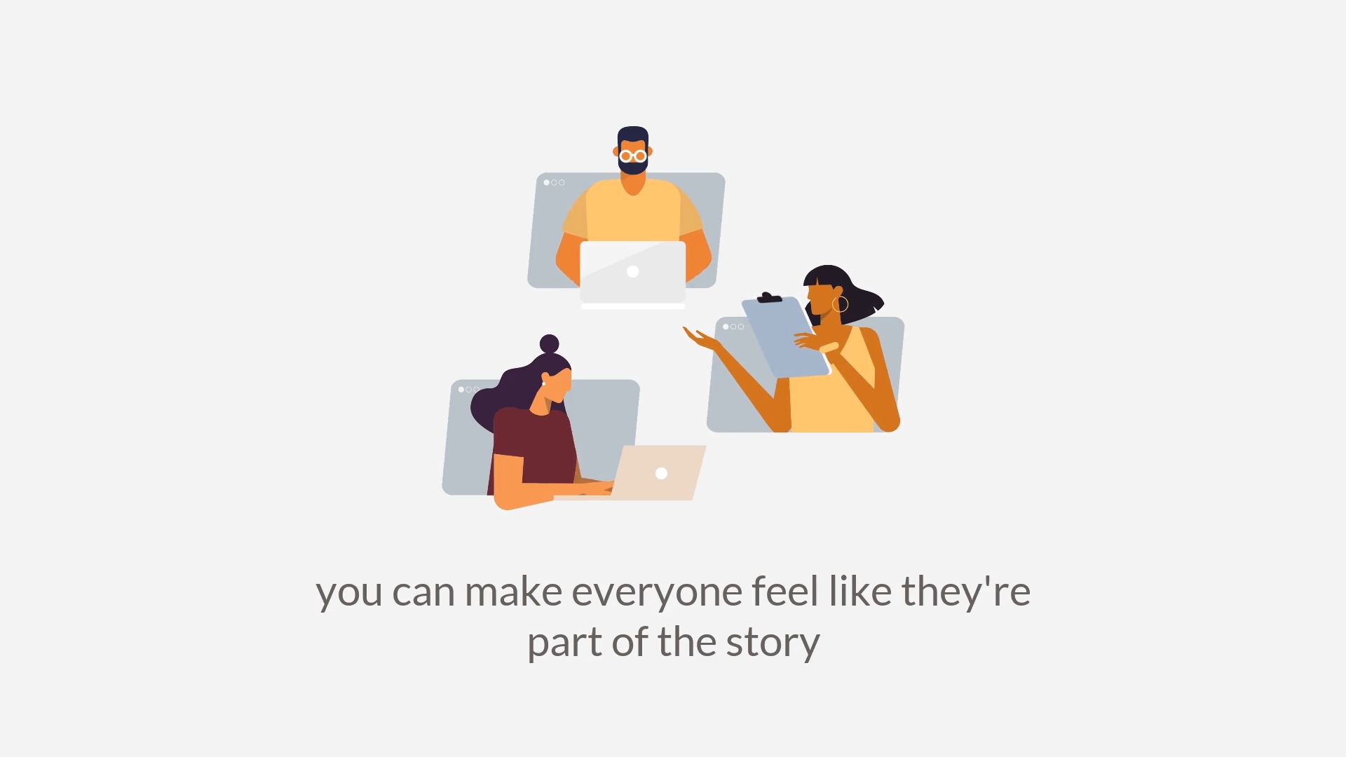 Bring your team and your message to life with this flexible pack of animated scenes. Choose from a diverse range of characters and colors. Mix and match to build your perfect video.